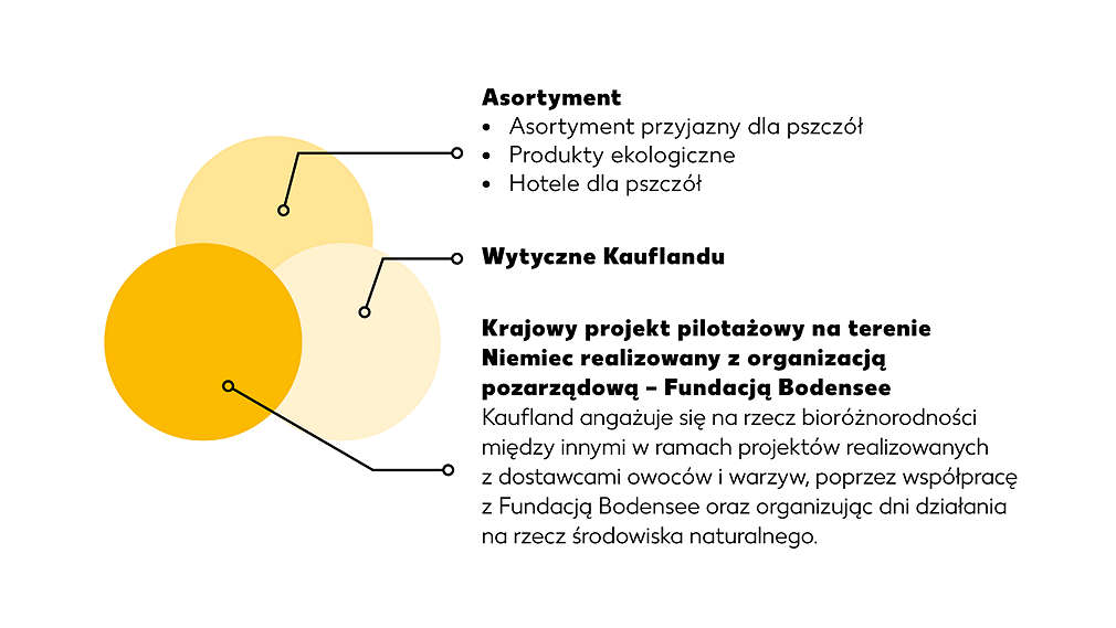 Utrata różnorodności biologicznej ma wielorakie przyczyny. Jedną z nich jest rolnictwo przemysłowe. Dynamicznie rosnąca liczba ludności na świecie oraz zmiany zachowań konsumpcyjnych na zglobalizowanym rynku produktów spożywczych doprowadziły do rozszerzenia się i coraz intensywniejszej eksploatacji gruntów rolnych. Tym samym pestycydy obciążają wodę i glebę i mogą stanowić zagrożenie dla zwierząt i środowiska naturalnego. Skutkuje to zmniejszaniem się różnorodności biologicznej. Wymieranie pszczół na terenie całego kraju oraz rodzimych gatunków ptaków dotychczas żyjących w naszym otoczeniu są tego niepokojącymi oznakami.⁶ Kaufland chce temu zapobiegać i angażuje się – poprzez różnorodne działania i projekty – w zachowanie różnorodności biologicznej w naszym środowisku.