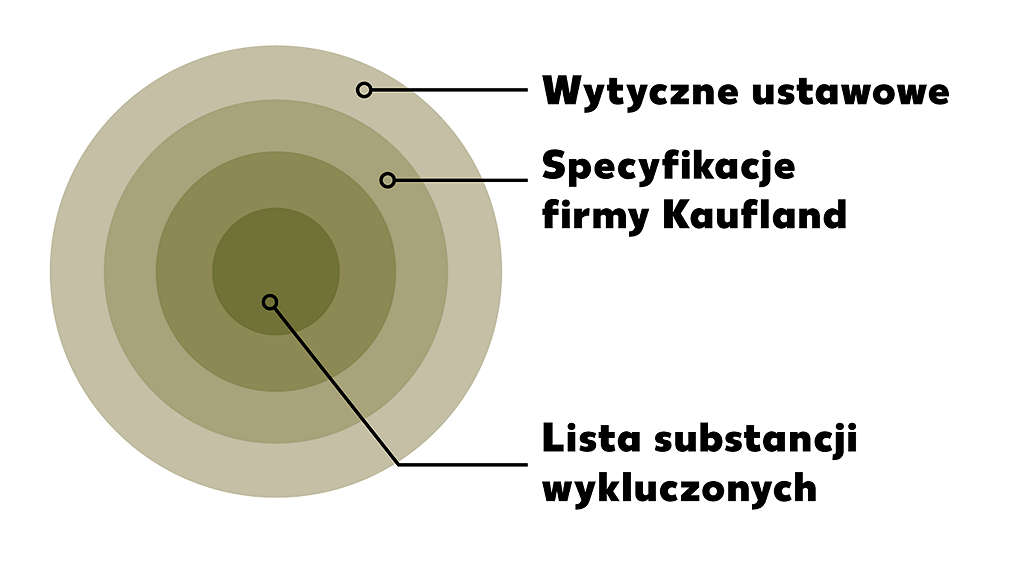 Lista substancji wykluczonych obowiązująca w Kauflandzie zawiera wszystkie substancje czynne, których stosowania Kaufland zabrania lub których stosowanie zostało wykluczone na podstawie wytycznych o zasięgu międzynarodowym (listy Światowej Organizacji Zdrowia 1a + 1b oraz postanowienia Konwencji Sztokholmskiej i Rotterdamskiej. Kaufland regularnie weryfikuje tą listę pod kątem jej aktualności oraz odpowiednio ją dostosowuje. Obecnie w sposób kategoryczny wykluczamy stosowanie ponad 200 pestycydów (patrz: Indeks „Lista substancji wykluczonych obowiązująca w Kauflandzie“).
